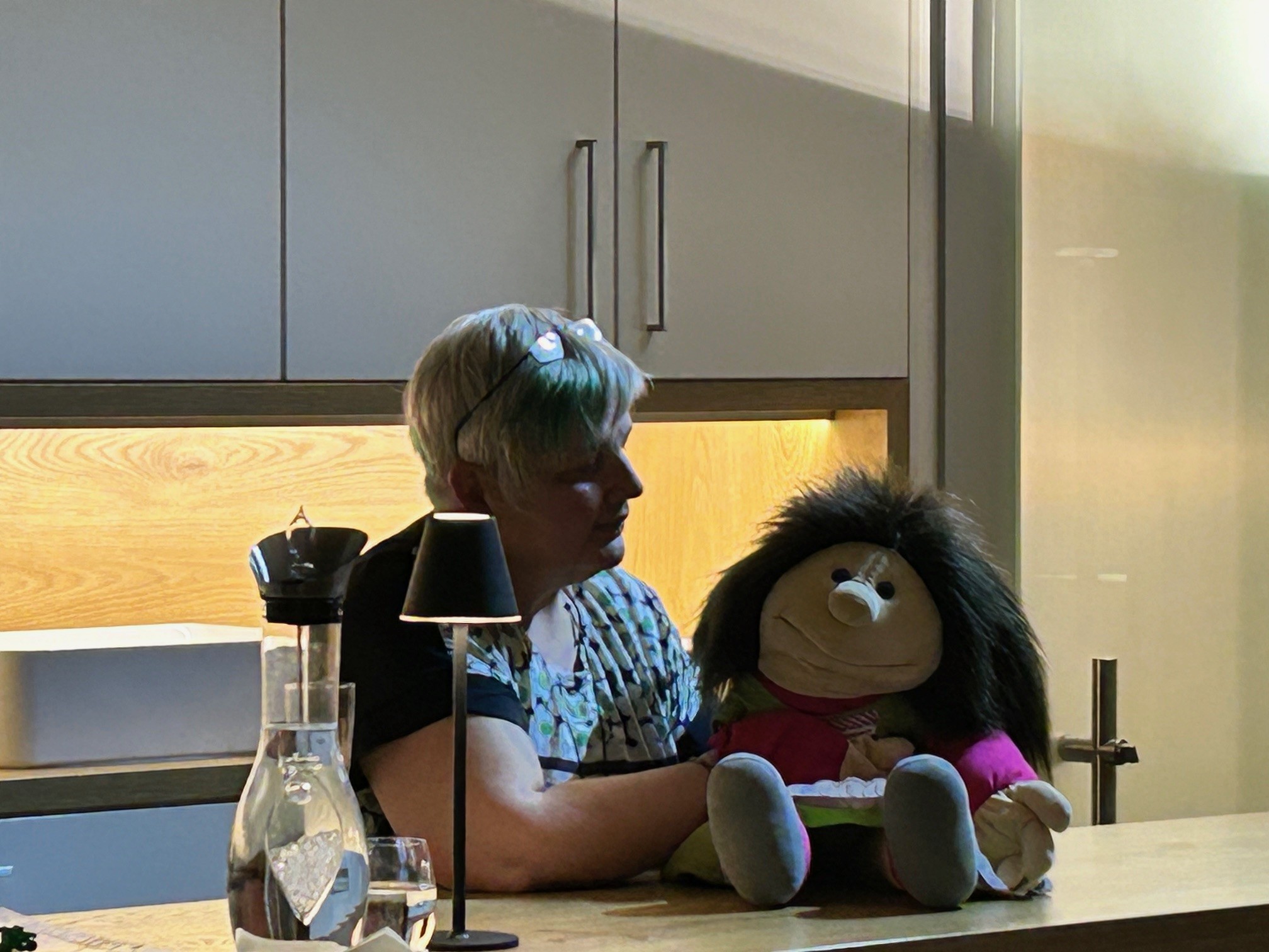 „GlücksMoment: Leben“ hieß unser Abend und mit einem bunten Mix aus Bewusstmachen, Bauchreden, Mini Lesung aus dem gemeinsamen Buch (von Malena und Birgit) und einer kleinen Klangreise mit zertifiziertem Heilinstrument umrahmt. Wir haben Mauli kennengelernt und die Glücksschnecke Helene, die mit ihrem „Glücks-Wohnmobil“-Schneckenhaus durch ihr Glücks-Leben streift. Von „Rosinen sind Trauben ohne Lebensfreude“ über kleine „mobile Glücksmomente“, von einer Meditation-Klangreise über das Gegenstück zum Glück namens „GLUCKSmoment bis zu einem Glücks-Gesang zusammen mit dem Publikum – dieser Abend war rundum „glücklich“ und vielseitig.