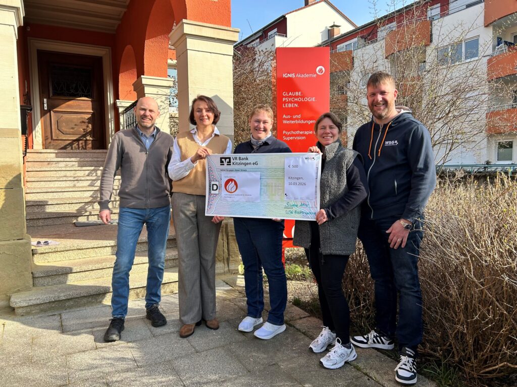 Die IGNIS Akademie in Kitzingen bietet neben psychotherapeutischen Angeboten, auch eine Vielzahl von Seminaren und Ausbildungen im Bereich Seelsorge und christlicher Lebensberatung an. In diesem Jahr feiert IGNIS 40jähriges Jubiläum. Wir möchten diese Arbeit mit unserer Spende unterstützen.